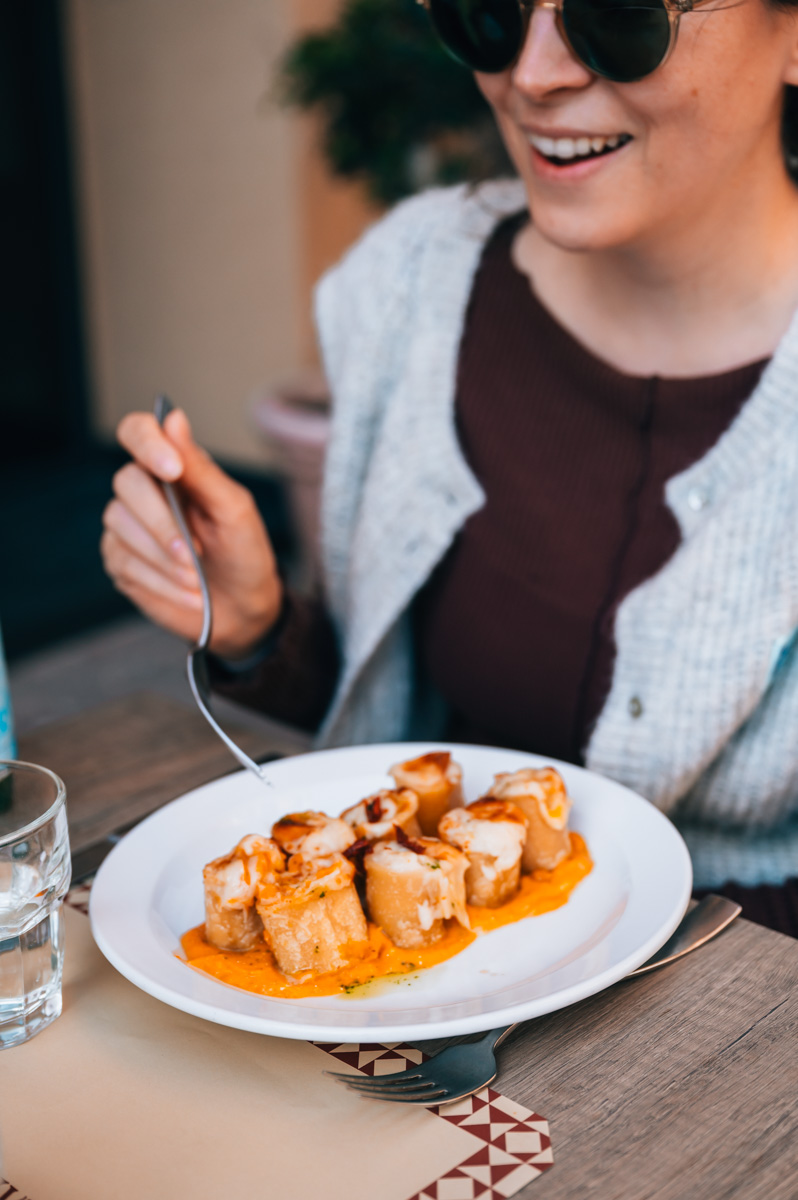 Osteria Expanificio: Der Eingang wirkt auf den ersten Blick unscheinbar. Innen erwartet dich allerdings eine sehr stylische, moderne Osteria. Bei schönem Wetter kannst du auch draußen Platz nehmen. Auf der Speisekarte stehen sizilianische Spezialitäten. Die Qualität kann sich absolut sehen lassen – nicht umsonst spricht Michelin eine Empfehlung für das Restaurant aus. Große Empfehlung!