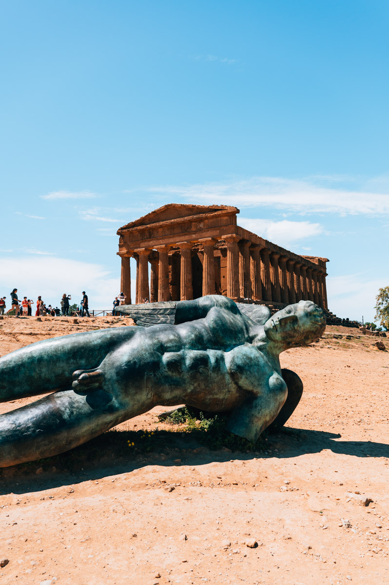Concordiatempel („Tempio della Concordia“): Der mächtige Concordiatempel ist der wichtigste und am besten erhaltene Tempel im gesamten Areal. Er ist also sozusagen das Herzstück und die wichtigste Sehenswürdigkeit im Tal der Tempel. Ein Blickfang ist die liegende Bronzeskulptur vor dem Tempel, die den gefallenen Ikarus zeigt.