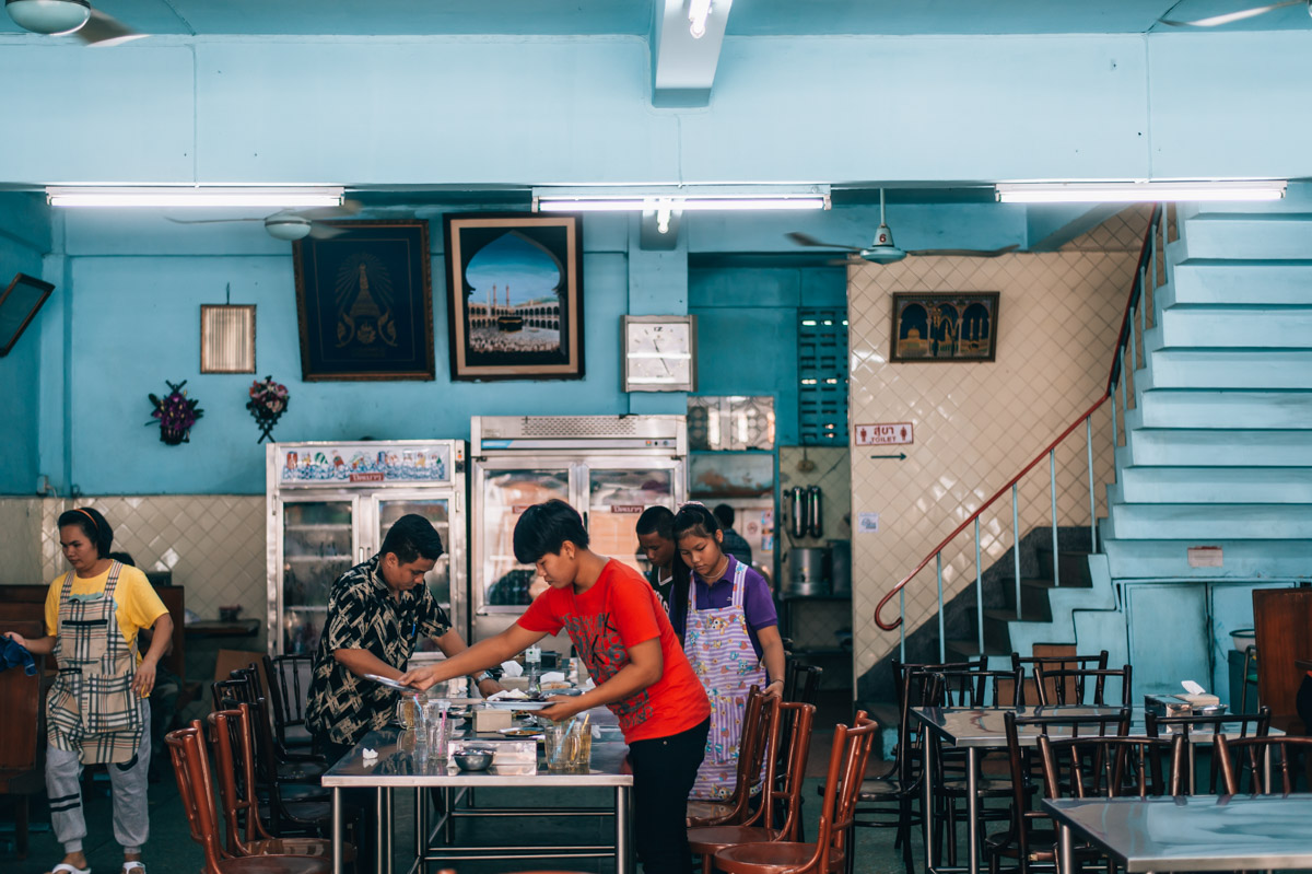 Man mag nicht für möglich halten, welche kulinarischen Schätze sich hinter der Fassade so manch eines Lokals verbergen. So etwa in einem muslimischen Restaurant im Herzen von Bangkok. Serviert werden indisch geprägte Currys – wir waren sofort im 7. Thai-Food-Himmel.