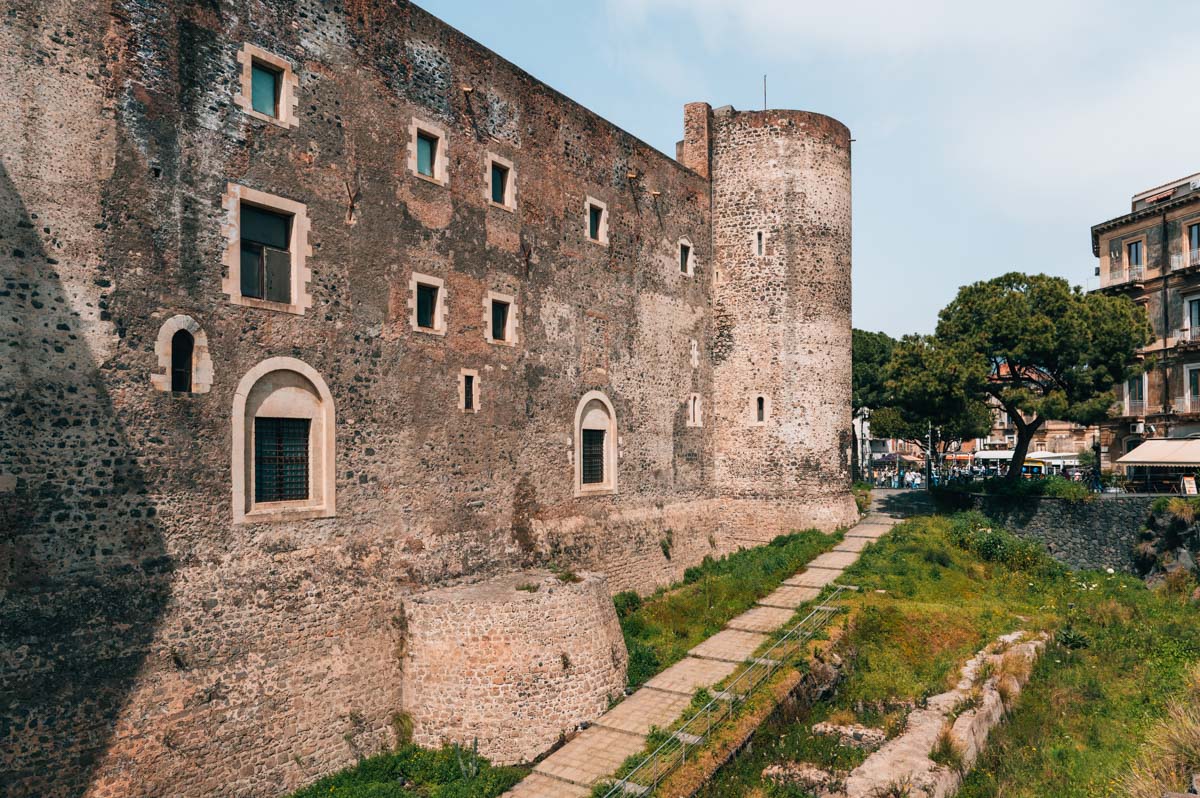 Im Süden der Altstadt von Catania, etwas abseits der übrigen Highlights, thront das Castello Ursino, eine mächtige mittelalterliche Burganlage. Sie stammt aus dem 13. Jahrhundert und hielt dem fatalen Ausbruch des Ätna im 17. Jahrhundert stand, während große Teile Catanias zerstört wurden.