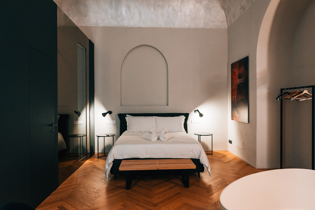 Die Apartments (fünf an der Zahl) liegen im ersten Stockwerk eines sizilianischen Palazzo (der mal eine Renovierung gebrauchen könnte). Die Apartments sind dafür extrem hochwertig und mit Liebe fürs Detail eingerichtet.