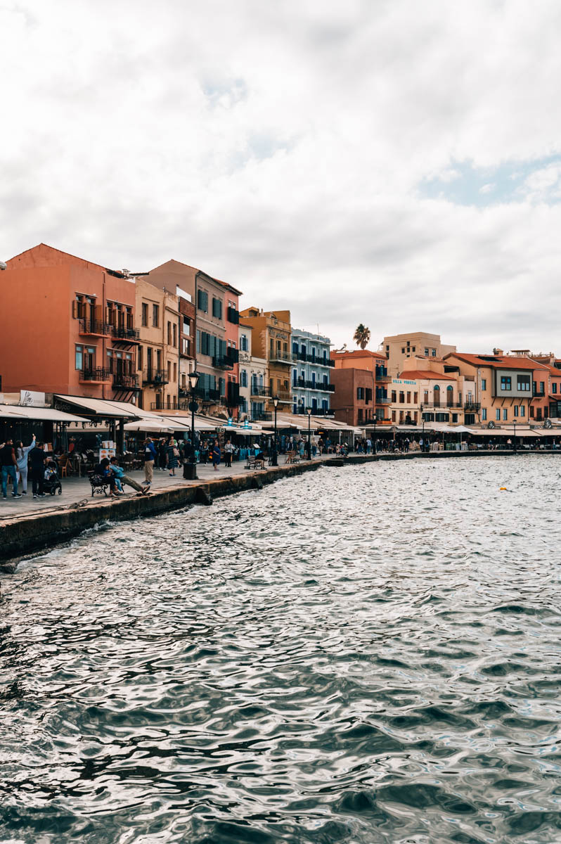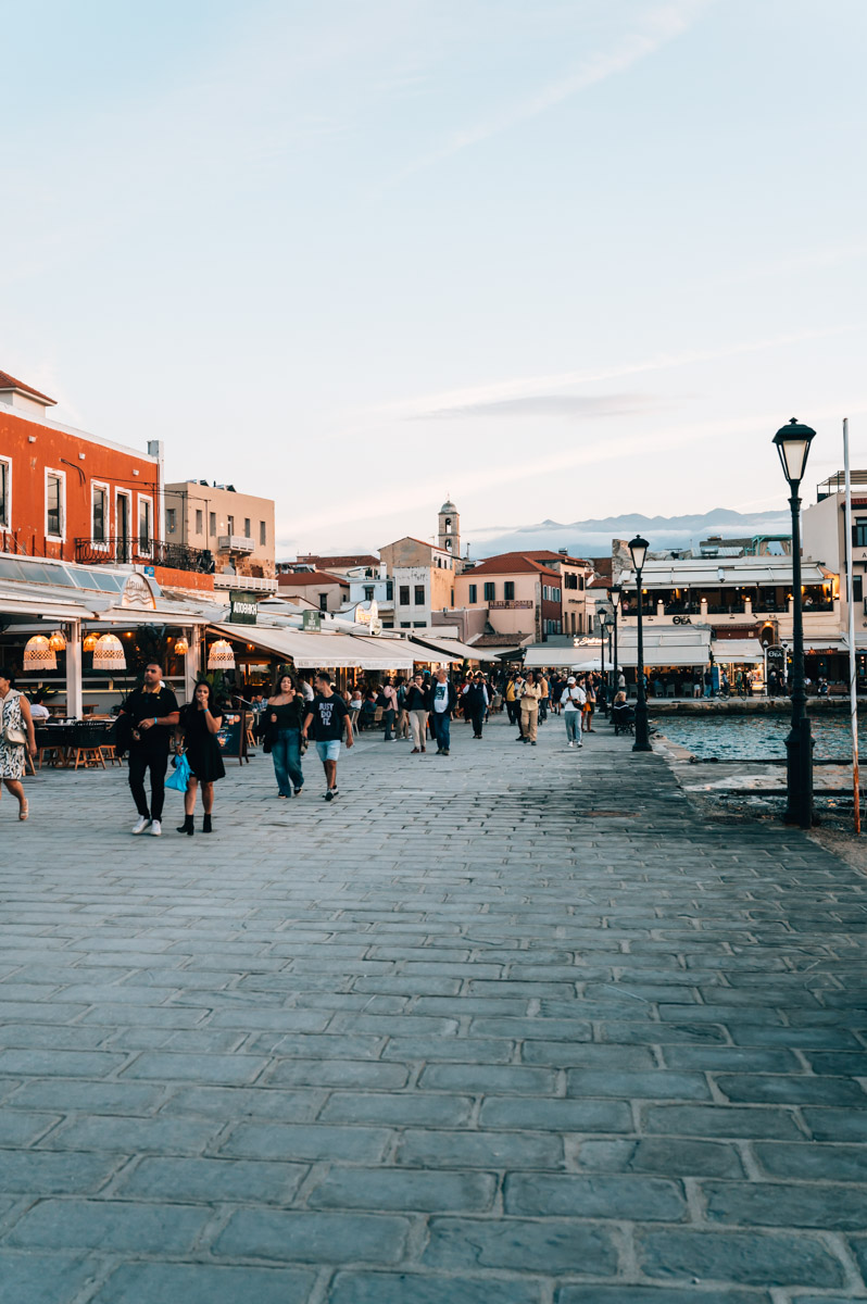 Die pastellfarbenen, venezianischen Hausfassaden machen den Hafen zu einer der wohl fotogensten Ecken Chanias – und zu einer der touristischsten. Die Restaurants direkt am Hafen werben mitunter recht aufdringlich um ihre Gäste. (Wo wir stattdessen einkehren würden, verraten wir dir im Kapitel zu unseren kulinarischen Tipps weiter unten in diesem Blogartikel.)