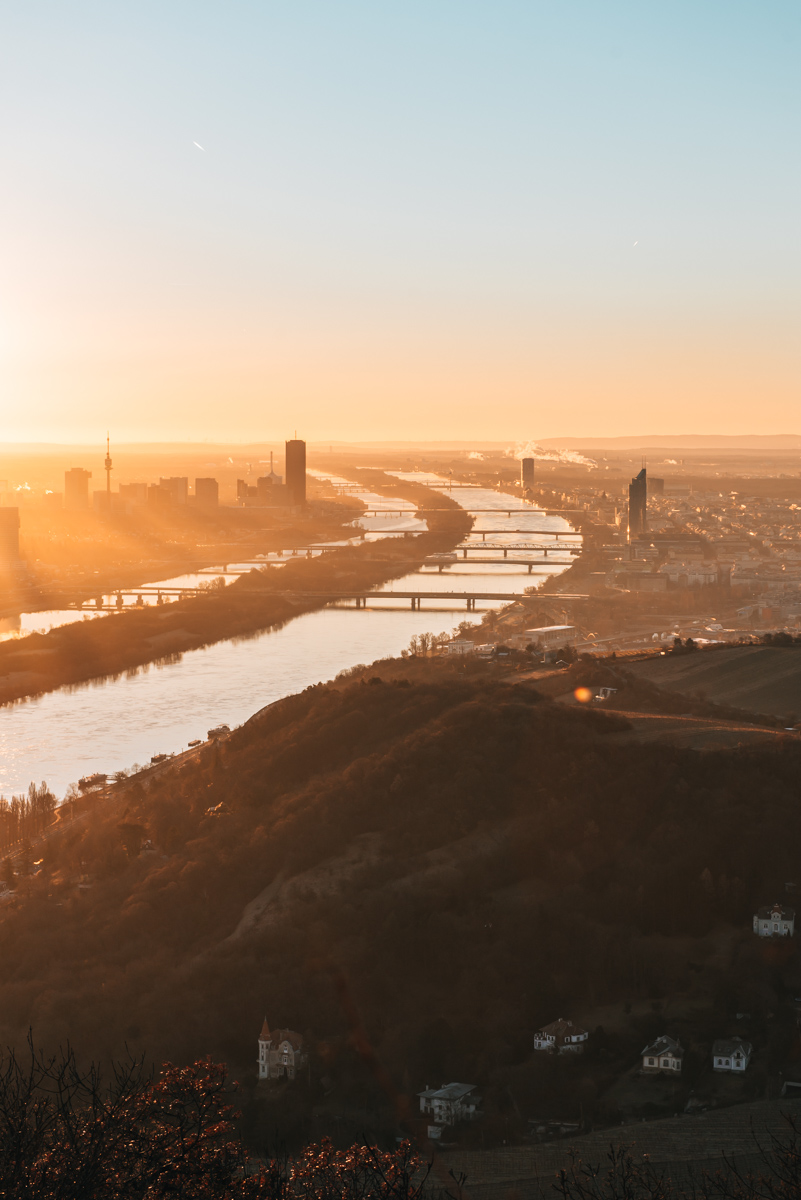 Der Kahlenberg ist einer der Wiener Hausberge am Rande der Stadt. Am Gipfel des Kahlenbergs befindet sich eine Aussichtsterrasse. Von hier oben hast du einen atemberaubenden Fernblick auf Wien. Von nirgendwo sonst hat man die beiden Donauarme so gut im Blick wie von hier.
