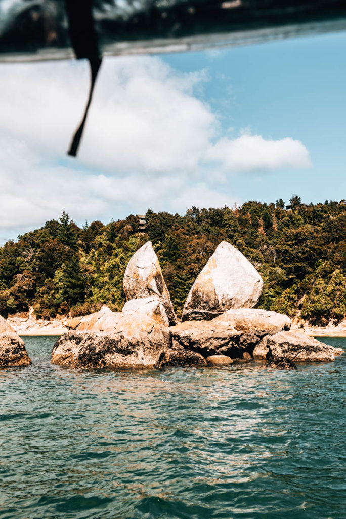 If Abel Tasman National Park was well known for one attraction, it would be the Split Apple Rock. As the name states, about 50 meters off the coast stands this rock formation, resembling an apple split-in-half.