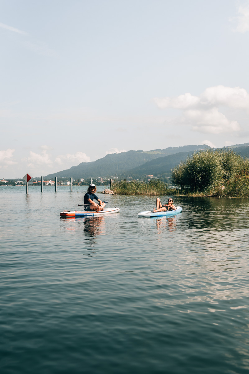 Lake Constance seemed more than inviting for a first timer. Although a bit shaky at first, we got the hang of the movement fairly quickly. Overall, being on the SUP board was much more exhausting than we had expected, because it requires a lot of muscle work to keep your balance.