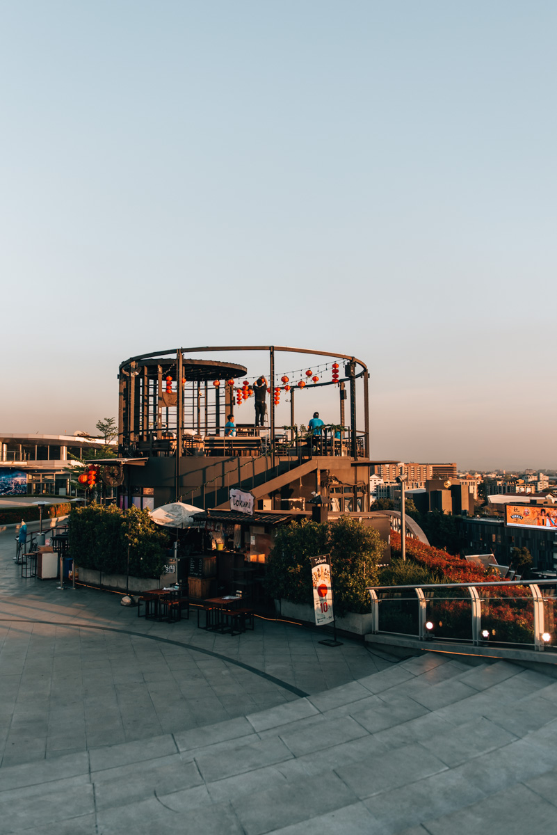 Would you like to enjoy a beer or a cocktail over the roofs of Chiang Mai? Then the roof terrace of the Maya Shopping Mall is a great place! At the moment, there are two bars up there – both of which unfortunately don’t open until around 6 pm, but just in time to catch the sunset!