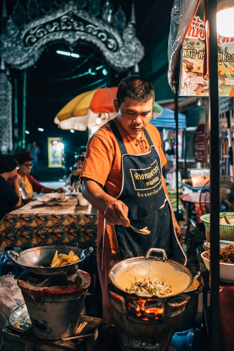 You’ll find souvenirs, art, jewellery, clothes, bags and a huge variety of goods being sold here. There are also quite a few food stalls where you can try both popular and (lesser known) local Thai food. Most of the food stalls are located in zones around the temples.
