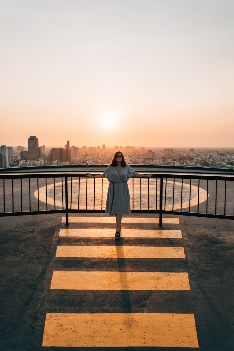 Bangkok’s skyline is stunning at night, but we highly recommend visiting just before sunset. This way, you can enjoy the changing light: the daytime view, the (hopefully) stunning sunset, and the night-time scene.