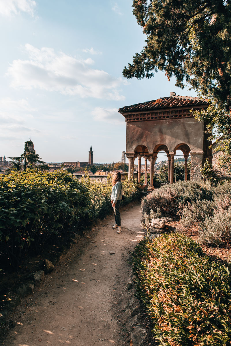 To get to Castel San Pietro, you first walk over the beautiful Ponte Pietra. Then you can either take the relaxed option of using the cable car or make the hike up by foot. Don’t worry: It takes a lot shorter than you think. In 10 minutes, you’ve already reached the top.