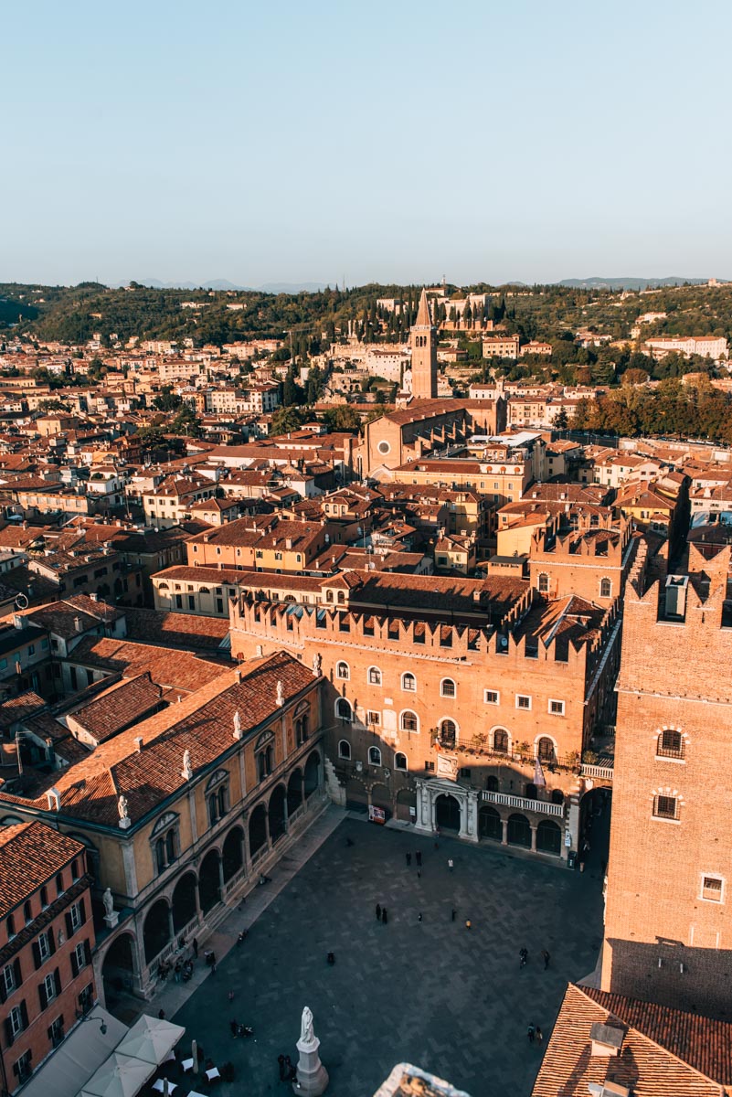 Once you reach the top, a fantastic panorama view in all directions is waiting for you. We found the view towards Piazza delle Erbe, in particular, to be very spectacular. Good to know: The net, which is probably there to keep away the pigeons, makes it quite easy to take photos through. But taking nice portraits is a little more challenging.
