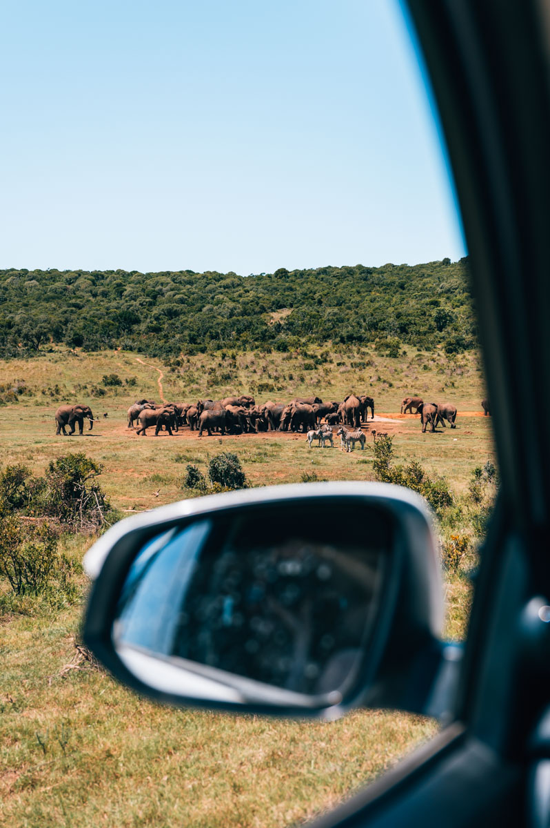 Im Addo Elephant National Park kannst du – wie es der Name bereits vermuten lässt – Elefanten in freier Wildbahn beobachten. Das Besondere dabei: Du kannst ganz einfach mit dem eigenen Auto durch den Park fahren und dich auf die Suche nach Elefanten, Zebras und sogar Löwen machen!
