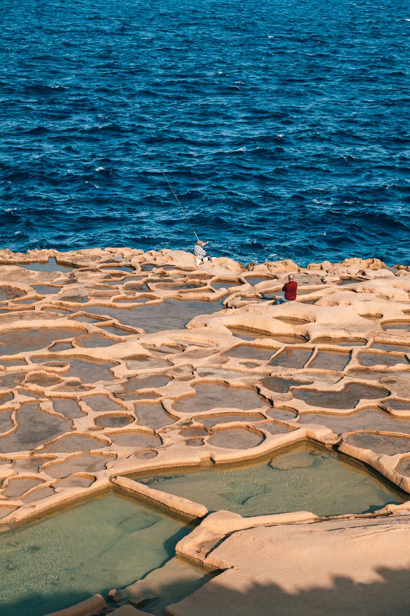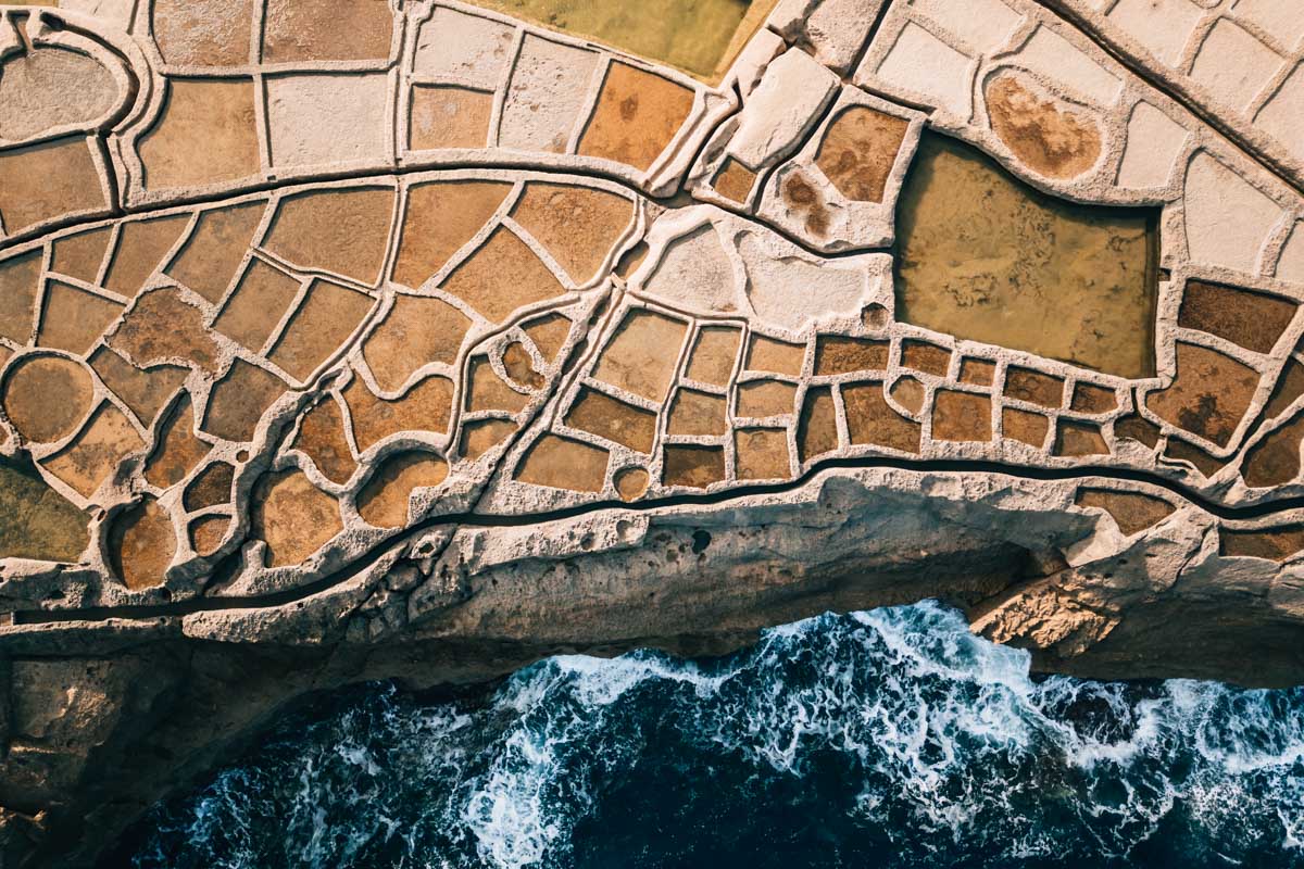 Vor allem aus leicht erhöhter Perspektive lassen sich die Salzbecken toll bestaunen. Dazu musst du keine Drohne fliegen lassen: Sowohl von der Küstenstraße als auch von der nach oben führenden Straße Triq Għajn Mhelhel hast du einen schönen Blick auf die Salinen. Gut zu wissen: Bei einigen Salzfeldern herrscht Betretungsverbot.