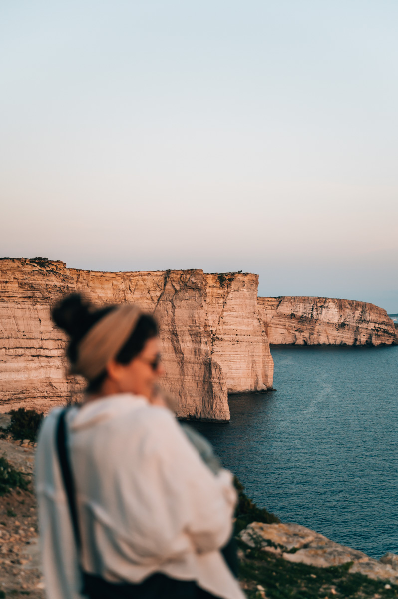 Last but not least kommt noch unser persönliches Highlight auf Gozo: Die grandiose Steilküste im Westen der Insel. Die atemberaubenden Klippen fallen hier über 100 Meter steil ab – Gänsehaut! Entlang der Küste kannst du kilometerweit wandern und die spektakuläre Naturkulisse genießen.