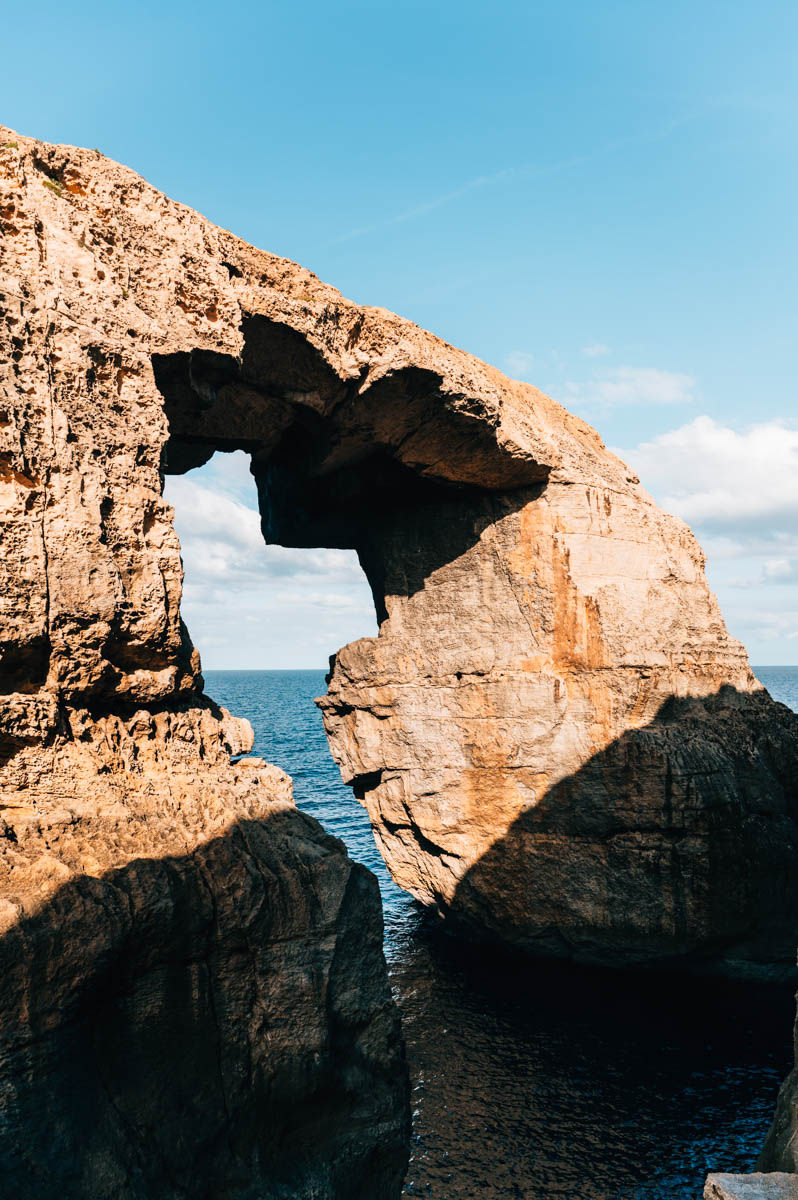 Das eindrucksvolle Felsentor liegt im Norden von Gozo, am Ende einer Schlucht. Du kannst mit dem Auto aus dem Landesinneren kommend recht nah ans Tor heranfahren. (Die holprige Küstenstraße würden wir mit dem Auto eher vermeiden.)
