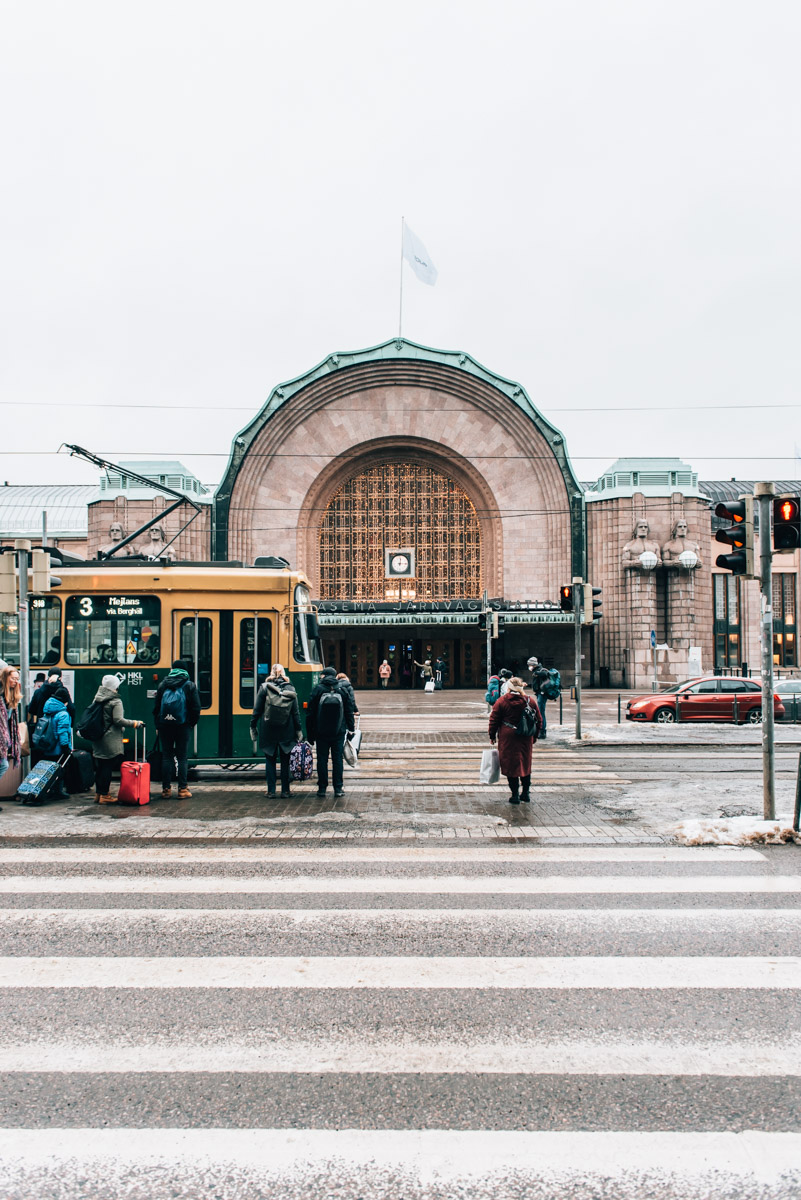 Der nächste Stopp auf unserem Rundgang durch Helsinki ist eine eher ungewöhnliche Sehenswürdigkeit: der Bahnhof. Er ist nicht unbedingt eine klassische Schönheit, allerdings in architektonischer Hinsicht recht spannend.