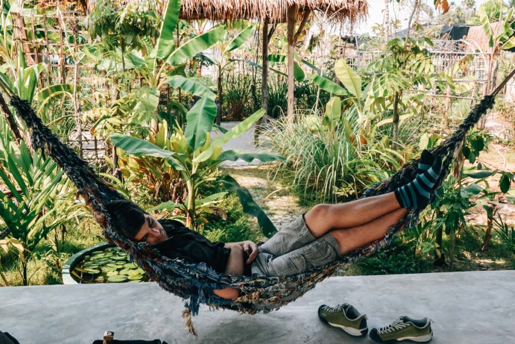 Selbstverständlich können wir alle selbst gekochten Gerichte auch direkt genießen. In der Mittagspause legen wir uns für ein Schläfchen in eine der Hängematten. Hier lässt es sich wirklich aushalten!