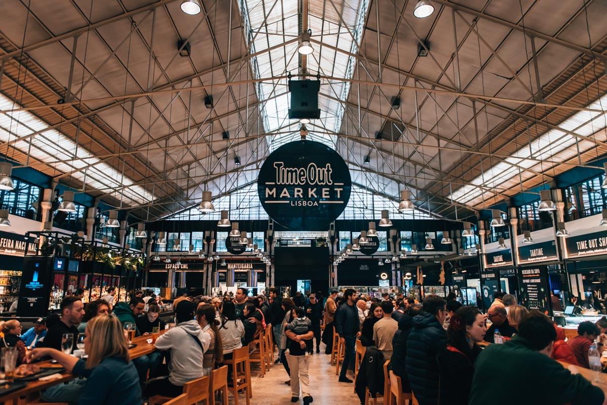 Time Out Market: Diese riesige Food-Halle hat sich zu einem Hotspot in Lissabon entwickelt. Hier sind etwa 40 verschiedene Essensstände untergebracht. Ob Burger, Pizza, Asiatisch und Co. – alles ist dabei. Wir persönlich fanden die Atmosphäre etwas hektisch, aber für ein unkompliziertes Essen kannst du hier auf jeden Fall vorbeischauen.