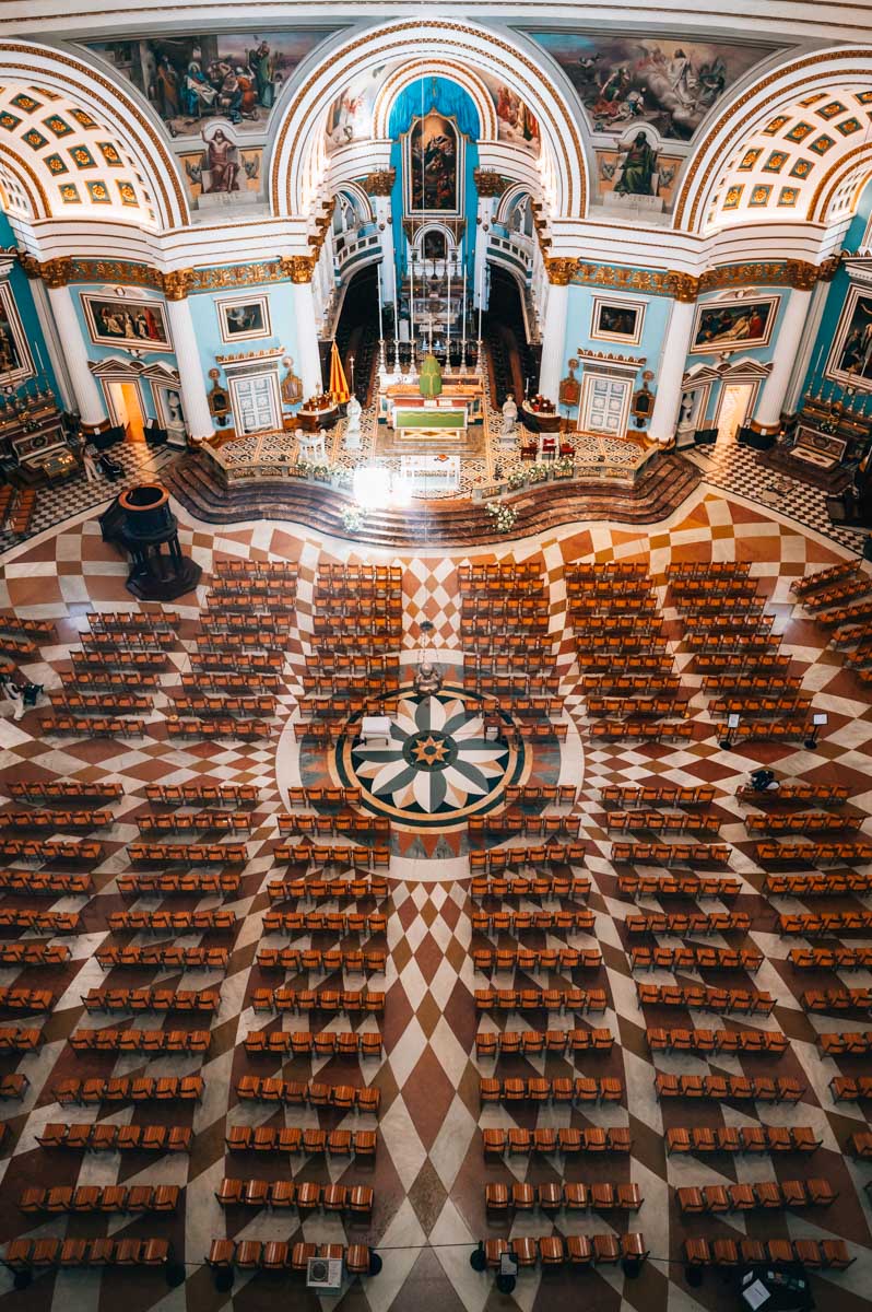 Die Dimensionen der Rotunde von Mosta sind gewaltig: Ihre Kirchenkuppel gilt als die viertgrößte weltweit! Ein (kostenpflichtiger) Rundgang führt dich unter anderem auf den Balkon der Kuppel, sodass du einen eindrucksvollen Blick aus der Vogelperspektive auf den Kircheninnenraum genießt.