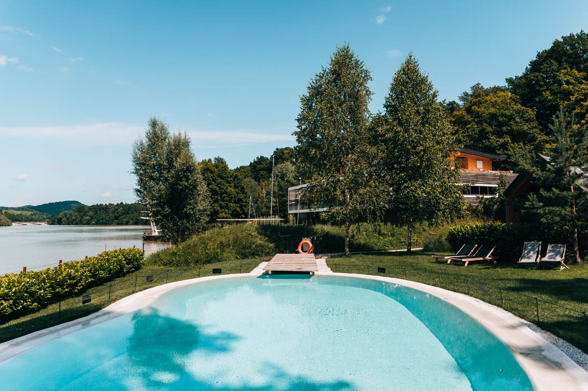 Die Unterkunft liegt etwas außerhalb von Maribor, ungefähr 10 Autominuten entfernt. Das macht aber gar nichts – ganz im Gegenteil. Du darfst dich dafür auf Ruhe und Erholung freuen. Die Unterkunft liegt direkt am Ufer der Drau und ist in architektonischer Hinsicht einzigartig.