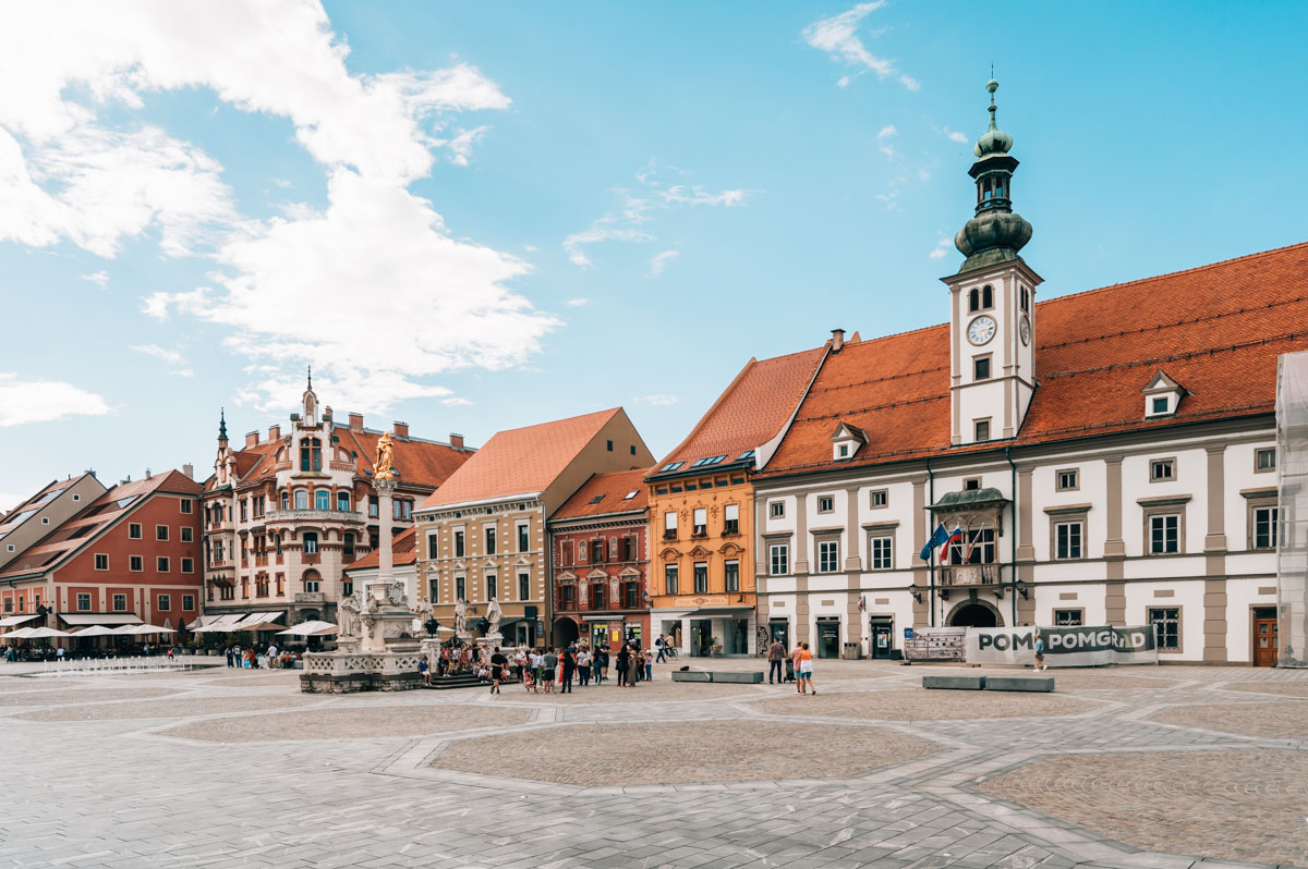 Deine Stadtbesichtigung kannst du zum Beispiel am hübschen Hauptplatz von Maribor starten, dem sogenannten Glavni Trg. Er befindet sich im Herzen der Altstadt und beeindruckt mit einem wunderschönen Gebäudeensemble.