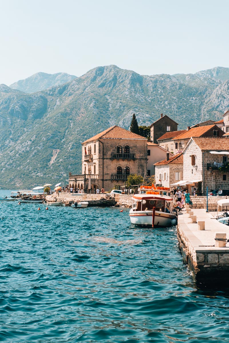 Startpunkt unserer Reiseroute ist Perast in der berühmten Bucht von Kotor – jener Meeresbucht, die zum UNESCO-Weltkulturerbe zählt und Reisende magisch anzieht. Die nahezu autofreie Altstadt von Perast hat sich dennoch ein beschauliches Flair bewahrt. In unseren Augen ist Perast der schönste Ort in der Bucht von Kotor.