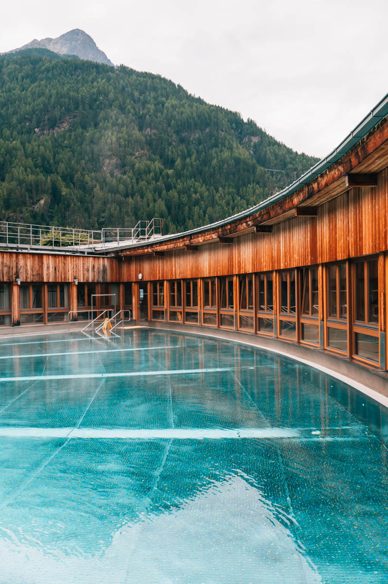 Sowohl indoor als auch outdoor gibt es unzählige Becken. Die berühmtesten sind jene drei ikonischen Rundbecken, die stufenförmig schweben und dir einen atemberaubenden Blick auf die Gipfel des Ötztals bescheren.