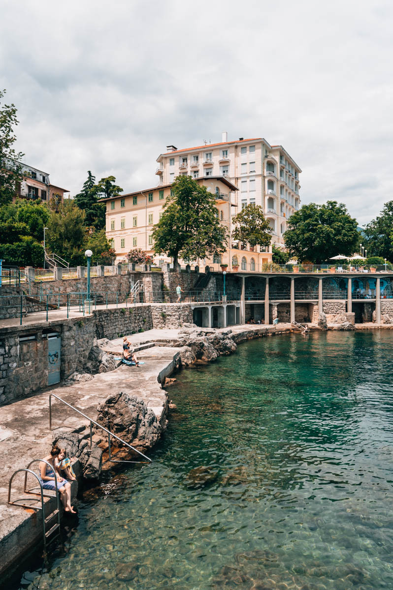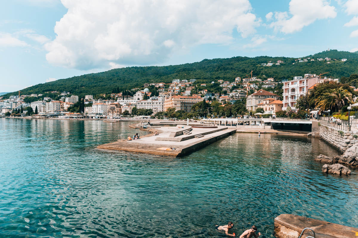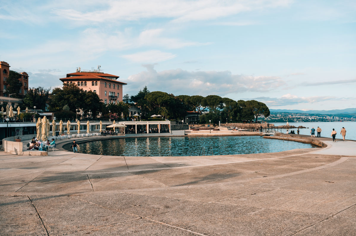 Ob man hier mal vorbeischauen kann? Definitiv – du wirst um diesen zentralen Ort nicht herumkommen, wenn du in Opatija bist. Ob du hier die idyllischsten Bademomente auf deiner Kroatien-Reise erleben wirst? Wohl eher nicht.