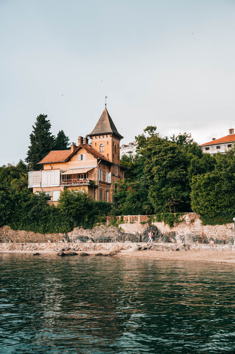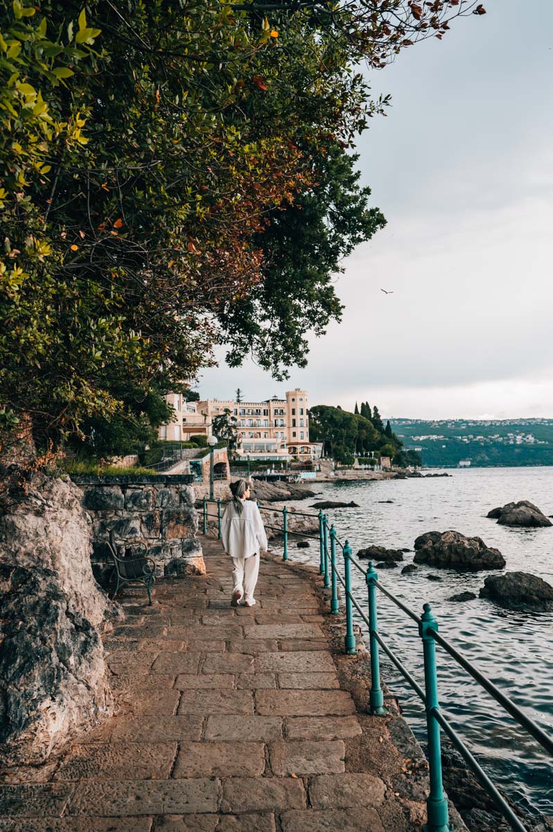 Entlang der Promenade liegen die meisten wichtigen Sehenswürdigkeiten von Opatija, unzählige Grand Hotels sowie Villen von damals – manche hübsch renoviert, andere leider verfallen. Nimm dir für den Spaziergang unbedingt genügend Zeit. Du findest immer wieder Info-Schilder mit spannenden geschichtlichen Details zu den einzelnen Orten.