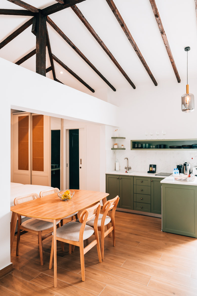 Die Apartments sich modern mit einem Hauch Boho-Vibes eingerichtet. Das Bett ist sehr bequem. Praktisch ist die Küchenzeile, über die jedes Zimmer verfügt. So kannst du dir z.B. Frühstück zubereiten oder auch mal etwas zu Mittag/Abend kochen.