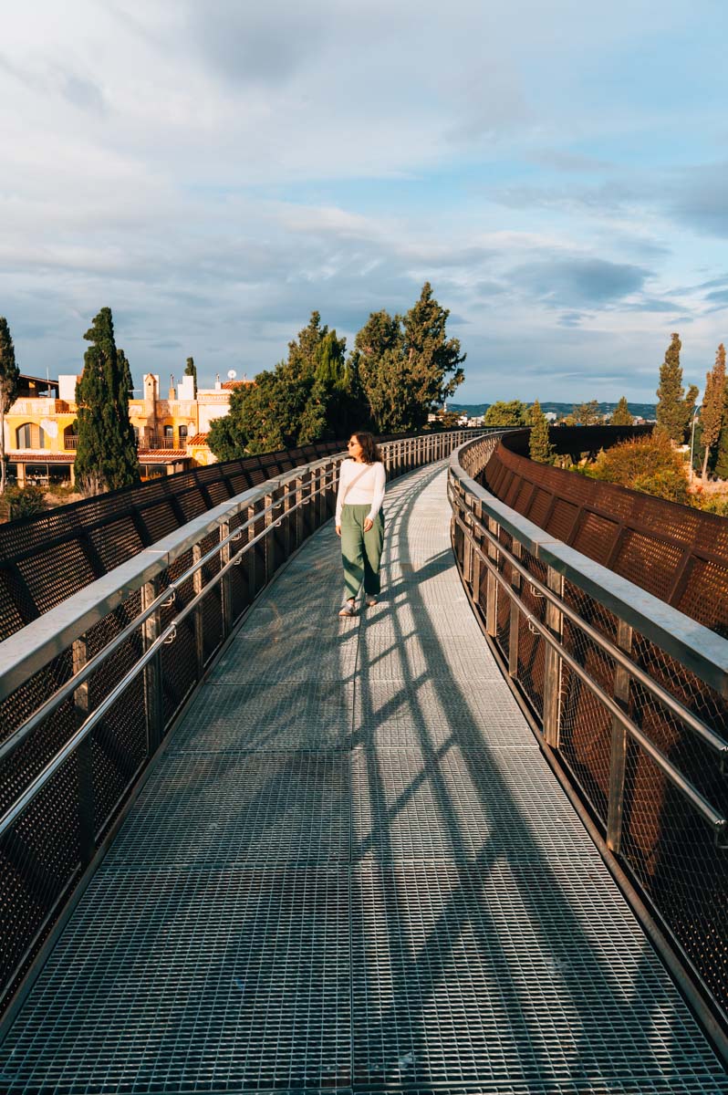 Seit 2022 gibt es noch eine weitere, neue Sehenswürdigkeit: Eine U-förmige Stahlbrücke („Paphos Skywalk“) führt stetig bergauf auf den Fabrica Hill.