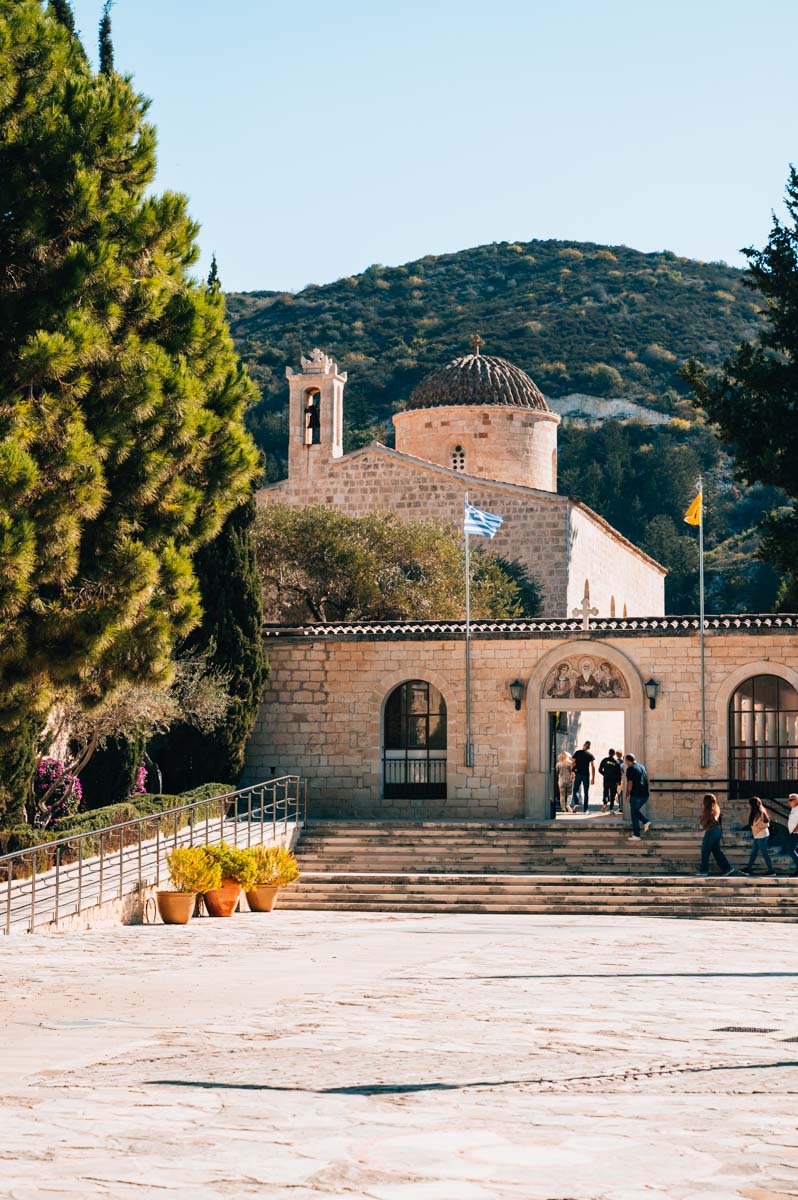 Das Kloster zählt zu den bekanntesten auf Zypern und ist definitiv auch ein sehr besonderes. Hier wurde nämlich eine kleine Höhle in den Felsen geschlagen („Enkleistra“), deren Wände mit sehenswerten byzantinischen Fresken verziert sind. Die Höhle kannst du gegen eine kleine Gebühr besichtigen.