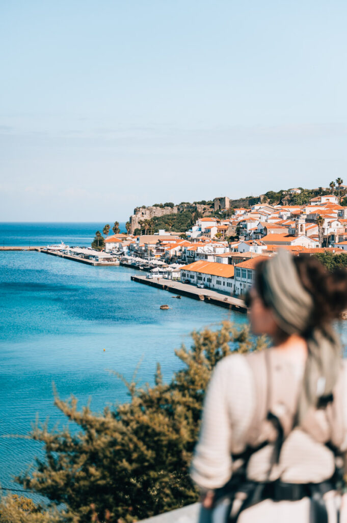 Deinen Rundgang kannst du beispielsweise starten, indem du den kleinen Viewpoint besuchst, der sich an der Stadteinfahrt im Westen befindet. Der Aussichtspunkt selbst ist kein Highlight (er befindet sich direkt neben der Straße), aber der Blick auf Koroni ist richtig schön.