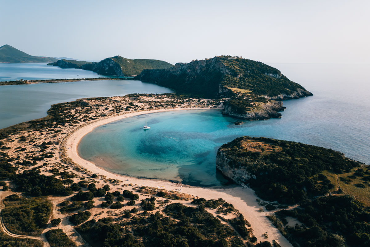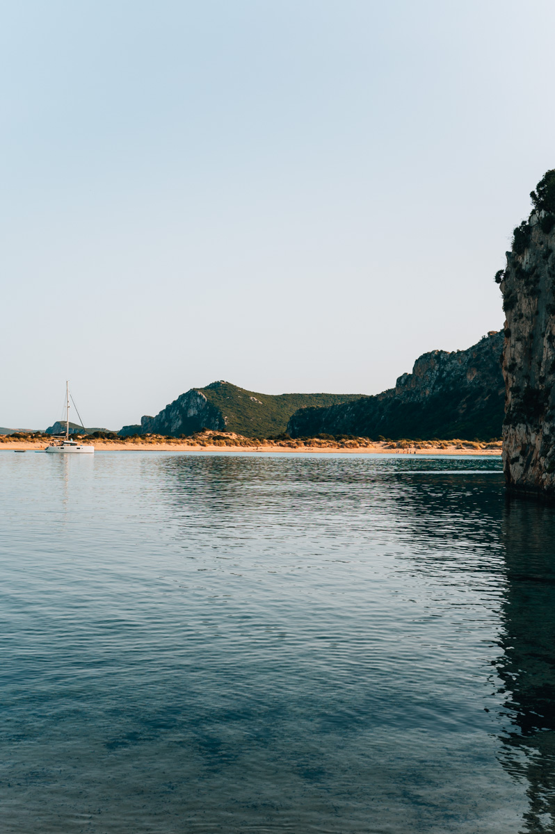 Der absolute Besucher*innen-Magnet befindet sich jedoch noch ein kleines Stückchen weiter Richtung Norden. Dort gelangst du zum berühmten Voidokilia Beach, der auch als Ochsenbauchbucht bekannt ist. Einzigartig ist vor allem der Blick aus der Vogelperspektive auf den sichelförmig geschwungenen Sandstrand.
