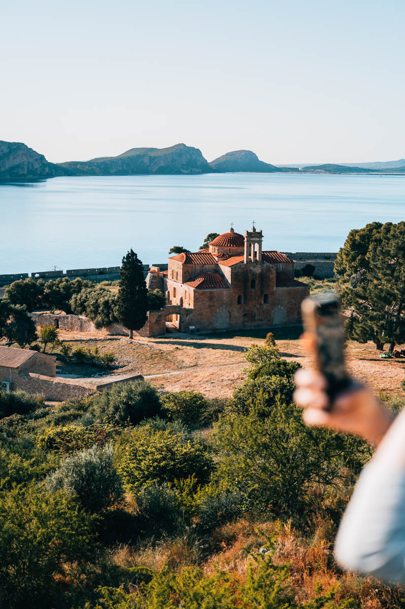 Last but not least sollte dich dein Rundgang unbedingt zur Festungsanlage von Pylos namens Neo Kastro führen. Du erreichst diese vom Hafen aus zu Fuß in knapp 10 Minuten. Die Festung ist ziemlich weitläufig, sodass es einiges zu entdecken gibt. Der Blick hinab Richtung Meer ist vor allem im späten Nachmittagslicht richtig toll.