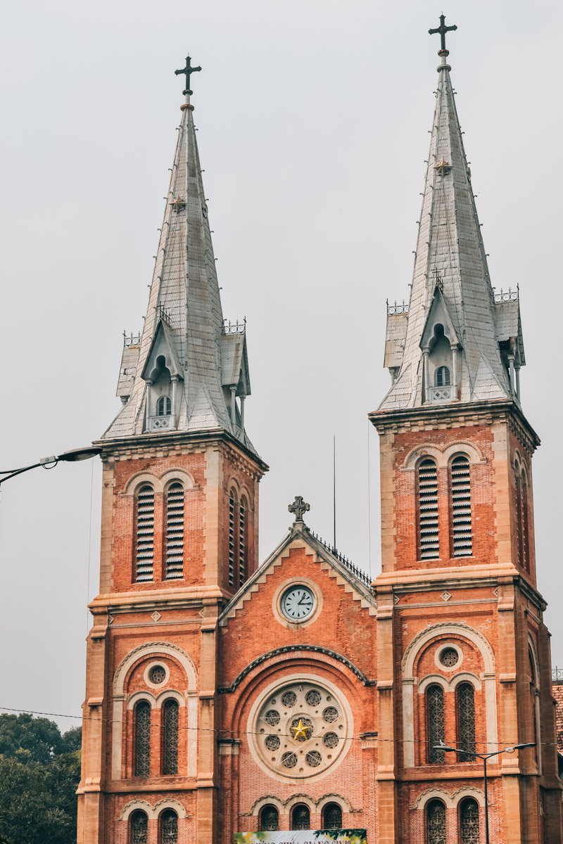 Kathedrale Notre-Dame: Eine römisch-katholische Kirche in Saigon? Zugegeben: Ein ungewöhnlicher Anblick und ziemlicher Kontrast. Die Kathedrale Notre-Dame ragt direkt gegenüber dem Hauptpostamt in die Höhe und ist ein weiteres wichtiges Wahrzeichen Saigons. Mit ihrer markanten Ziegelstein-Architektur ist sie ein ziemlicher Blickfang.