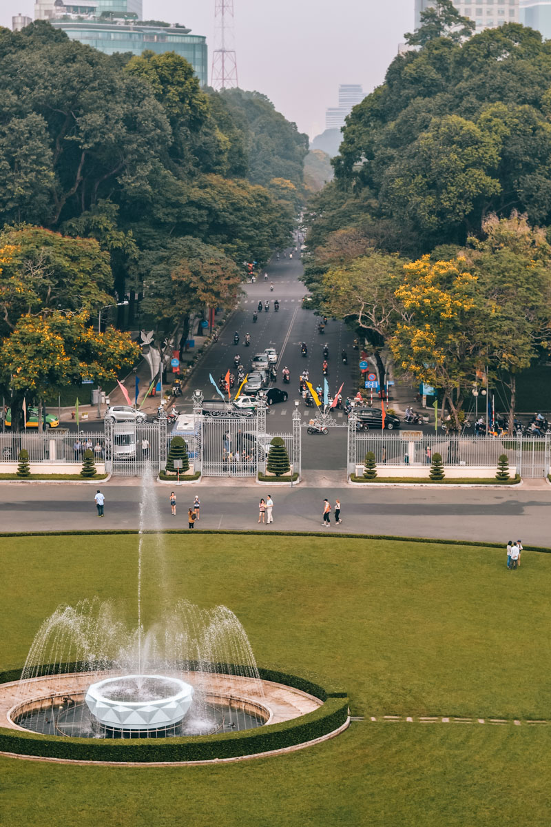 Einst war der Wiedervereinigungspalast der Regierungssitz Südvietnams. Im April 1975 durchbrachen die ersten nordvietnamesischen Panzer die Tore des Palastes. Seither gilt dieses Ereignis und damit auch der Wiedervereinigungspalast als symbolisches Ende des Vietnamkriegs.