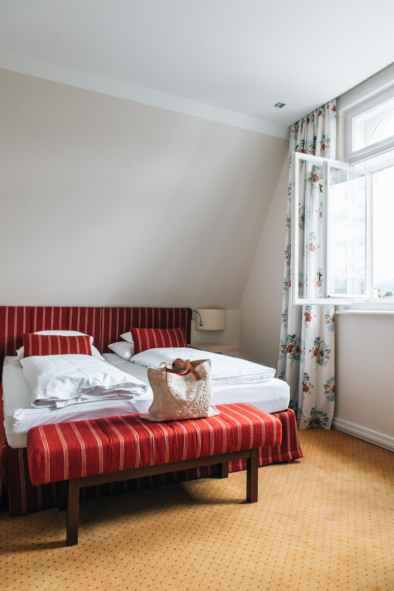 Die Parkvilla, die beinahe an ein kleines Schloss erinnert, beherbergt nur wenige Zimmer. Die Atmosphäre im Hotel ist daher sehr persönlich und familiär. Wir selbst waren jedes Mal in einem Doppelzimmer mit Seeblick untergebracht. Der Blick auf den See ist der Wahnsinn! Das Mobiliar in der Villa ist sehr herrschaftlich – an manchen Ecken zwar etwas in die Jahre gekommen, aber definitiv gut in Schuss.