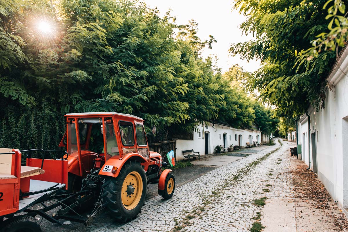 In Kellergassen reihen sich kleine, historische Presshäuser und Weinkeller wie an einer Perlenkette aneinander. Entstanden sind diese Kellergassen schon vor Jahrhunderten. Der Grund: Man brauchte Platz zum Pressen und Lagern des Weins. Wenn du genau hinsiehst, wirst du übrigens merken, dass die kleinen Häuser keinen Kamin besitzen, daher nennt man die Kellergassen im Volksmund auch „Dörfer ohne Rauchfang“.
