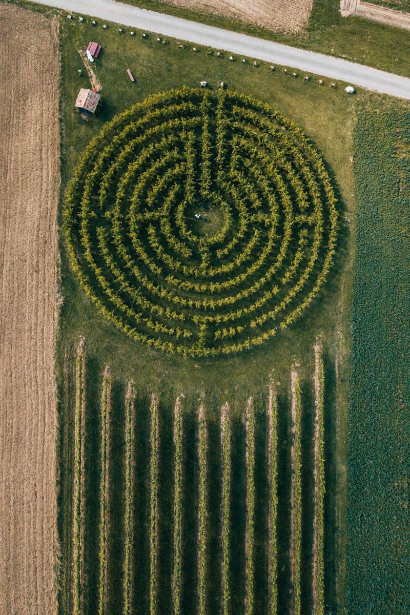 Weingartenlabyrinth: Ein Labyrinth aus Weinreben, was für eine geniale Idee! Das Weingartenlabyrinth ist unbedingt einen Besuch wert. Wer so wie wir vor der Weinlese kommt, der kann sogar an den reifen Trauben naschen.