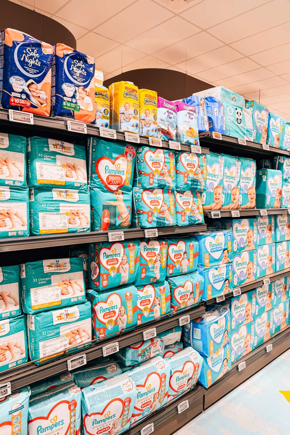Windeln kannst du auf Zypern problemlos im Supermarkt kaufen. Es gibt vor Ort zum Teil dieselben Marken wie in Österreich/Deutschland (allen voran Pampers). Die Preise sind ähnlich bis minimal günstiger. Je nach Dauer der Reise bzw. Platz im Gepäck nimm also am besten einen kleinen Vorrat mit und stocke dann vor Ort auf.